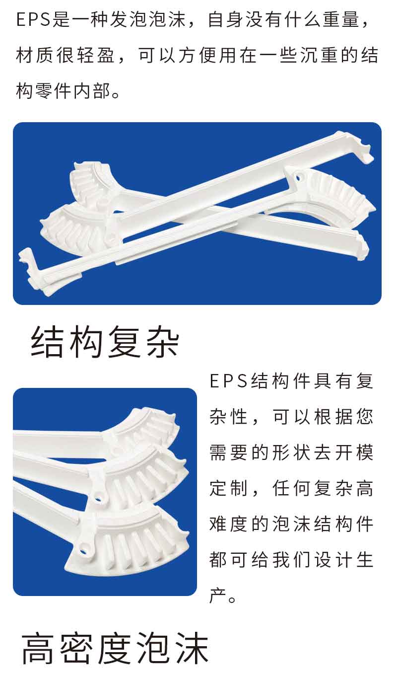 EPS結構件是根據需求開模定制的,前期通過設計和計算,按照要求進行打樣,
