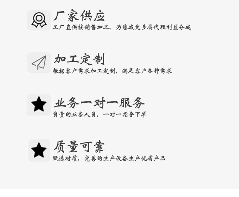 我司以信守誠諾,以誠信打造品牌,以質量贏得客戶和合作伙伴的信任與支持,打造出高效益、高質量、高服務的專業團隊為您服務。熱烈歡迎新老客戶蒞臨我司參觀指導!
